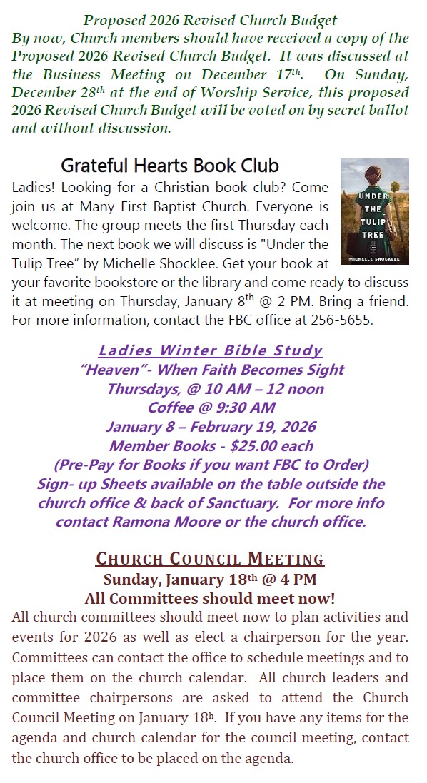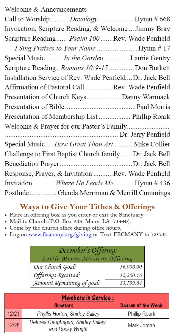Sunday Bulletin -  December 21, 2025