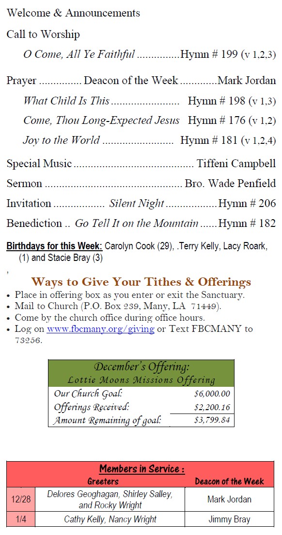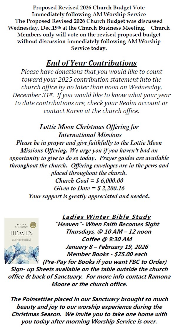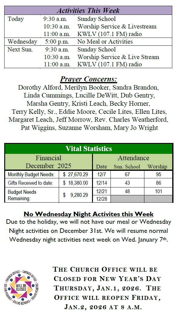 Sunday Bulletin -  December 28, 2025
