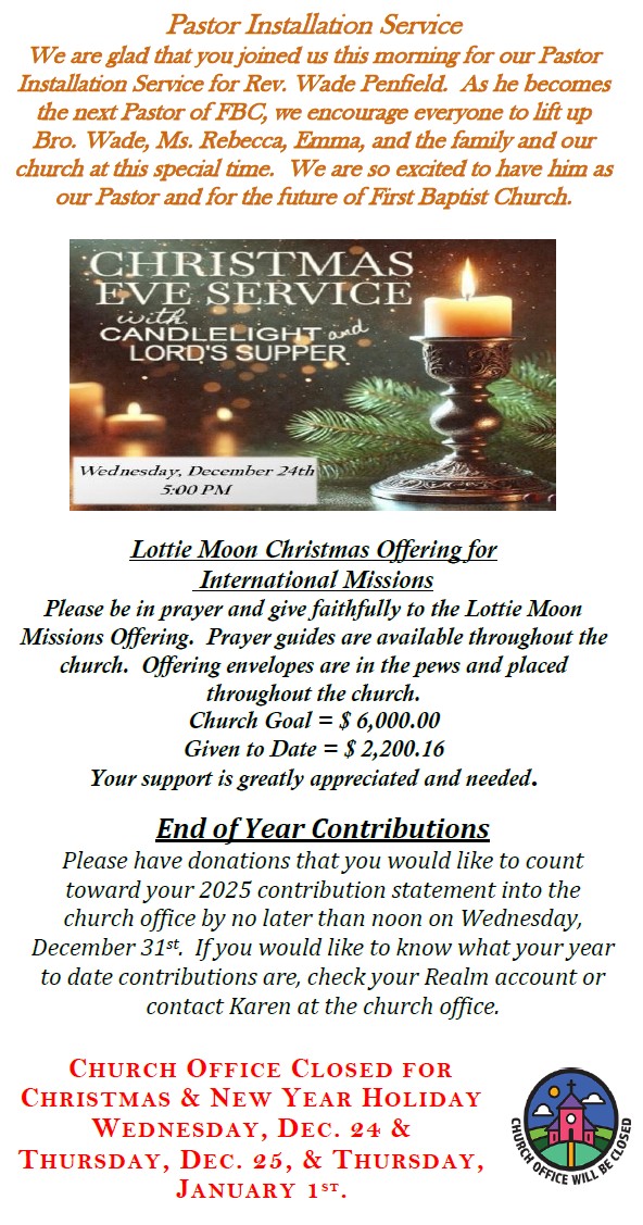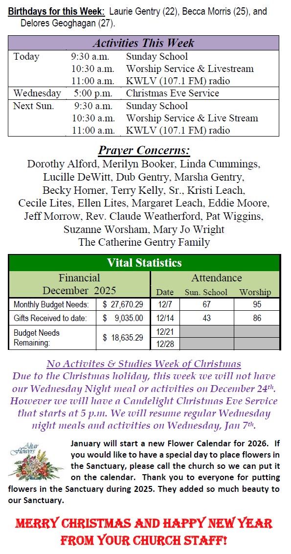 Sunday Bulletin -  December 21, 2025